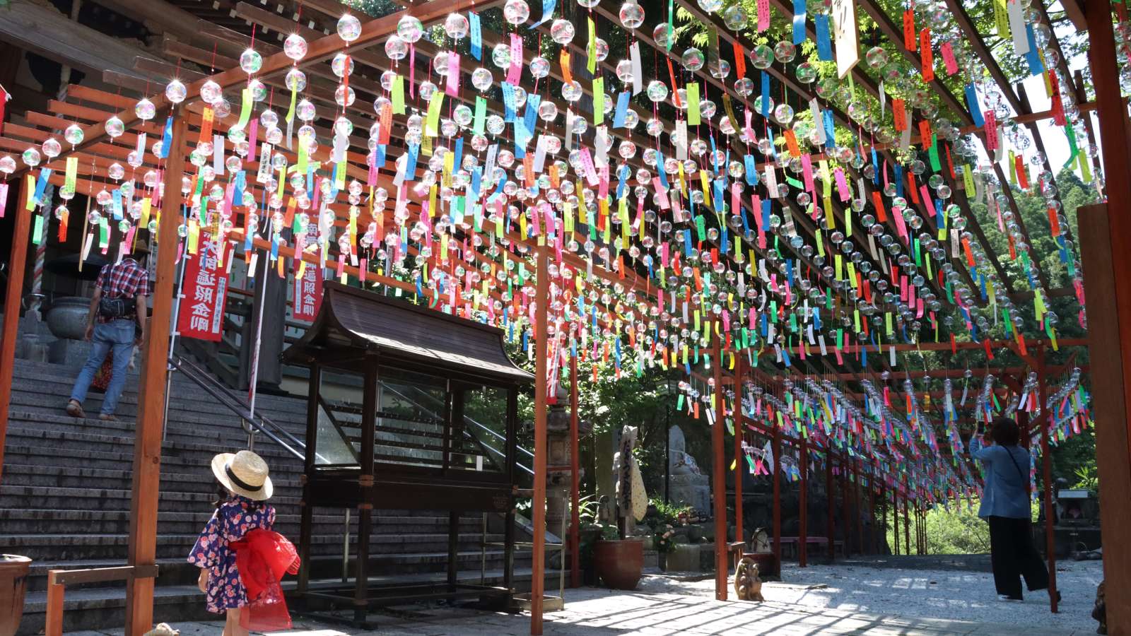 Le son frais du vent résonne dans l'enceinte du Sannoji, dans la ville de Sasaguri, à Fukuoka. Chaque année, du mois de mai à octobre, se déroule le festival des clochettes à vent dans le temple Sannoji. Il est possible d'écrire ses souhaits et pensées sur un carillon pour ensuite l'attacher et rendre encore plus coloré le festival.
