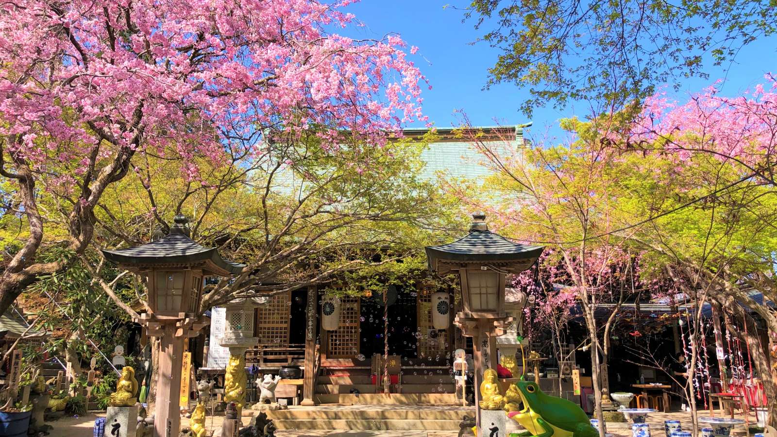 Selon la mythologie, le temple aurait commencé à être décoré avec des figurines de grenouille après que le grand prêtre soit revenu de Chine avec une figurine de grenouille en jade. Aujourd'hui, plus de 10 000 statues de grenouilles y sont dissiminées un peu partout.