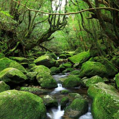 Éternellement verte, la forêt vierge de Yakushima assure une cure d’oxygène et de chlorophylle : c’est le shinrin-yoku, bain de forêt. À 60 km au sud de Kyushu, la position de l’île à la jonction de régions tempérées et subtropicales,montagneuses et côtières, a donné lieu à d’importantes variations climatiques,et généré des écosystèmes uniques.