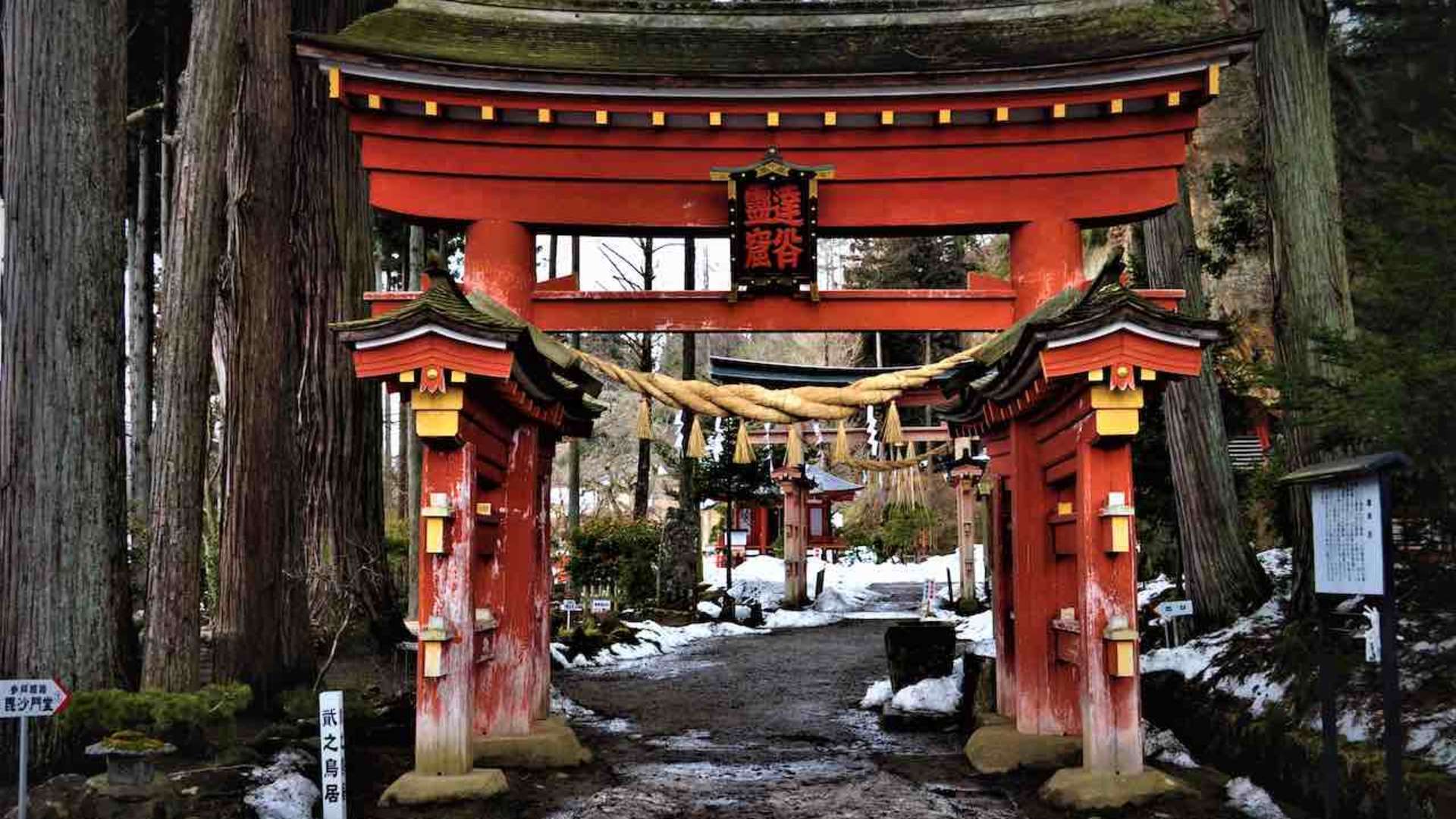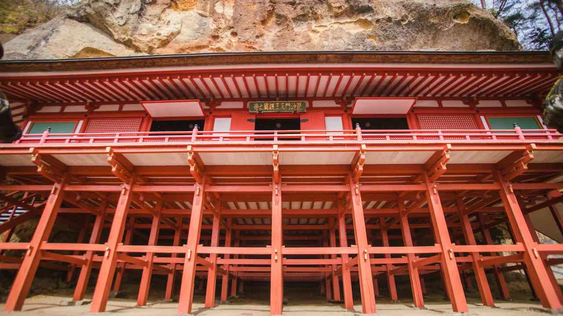 Takkoku no Iwaya est un temple qui se déploie sous une haute falaise. Le Bishamondo, son bâtiment principal rouge vermillon, est construit directement dans la roche, dissimulant une caverne où sont enfouies des reliques sacrées.