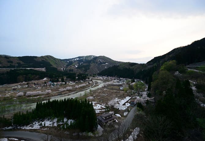 À proximité du village se trouve le mont Gassan , le plus haut sommet de trois montagnes de la région, les monts Dewa Sanzan . Ce volcan est un lieu religieux célèbre pour les fidèles du Shugendo. Pendant que vous êtes sur place, vous pouvez vous rendre à l'extérieur et explorer l'abondance de verdure de Yamagata.