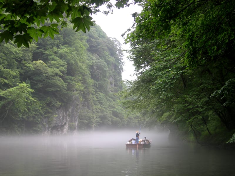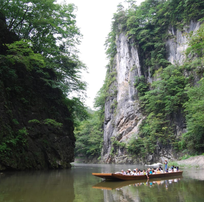 在東北岩手縣一關市的名勝「猊鼻溪」是知名的觀光景點,從明治時代(1868年-1912年)開始就為人熟知,四季遊船都能看盡不同的絢麗風光。在山溪的一端藏有一塊鐘乳石,在經過歲月的風化後,石頭的外形變得像獅子鼻,古字中「猊」指作獅子,因而有了「猊鼻」之名。旅客到此可乘搭傳統的觀光遊船,沿途飽覽猊鼻溪谷之美,看著船夫撐船的英姿,聽著他們唱起傳統歌謠,襯上蔚藍天色與盎然綠意,愜意自在。途經「毘沙門窟」時,記得拿起零錢拋往錢箱,成功拋進的話立刻許願,據說非常靈驗。待約30至40分鐘後,船隻便會靠岸,這時大家可走進深處窺探「猊鼻溪鐘乳石」之貌。最後返回乘船處,伴著兩旁的新綠夾道,結束這趟日本百景名勝遊船之旅。