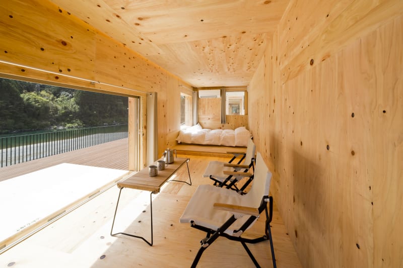 除了自助露營區,場內亦有與建築師隈研吾共同開發的特色建築「住箱」可供入住,在享受露營烤肉樂趣的同時,也能到河邊戲水、預約體驗仁淀川的激流泛舟活動。加上激流速度適中,不論大人小孩都可玩得盡興。附近更有細田守導演的動畫電影《龍與雀斑公主》中出現過的場景「淺尾沈下橋」,開車約五分鐘即可到達。