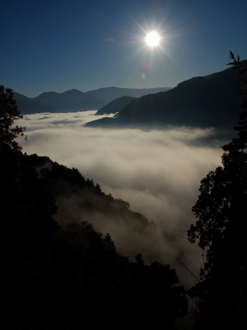 在四國德島縣內一個既具代表性又是日本秘境名單之一的「大步危峽」,大步危體驗行程選擇很多,除了大步危峽觀光遊覽船外,旅人們還可以選擇到訪日本秘境之一的「八合霧雲海」,在四季更迭下欣賞溪谷美景。在春末與初夏、秋末與初冬等季節交替之際,大步危所處的吉野川流域會因早晚溫差大而產生霧氣,沿山面攀升至八合目,日出時分還會形成一大片壯麗又神秘的雲海景致,讓附近群山皆化作島嶼,在晨光照耀下更顯夢幻迷人,因而得名為八合霧。