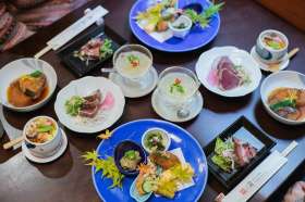 溫泉之旅,絕對不能缺少一間優質的溫泉住宿!我們來到了TheMana Village,為四國最大規模度假村之一,今次入住的套房 TheMana Room環境寬敞, 電磁爐以及煮食用具都齊備,更有私人海景露天風呂。酒店內又設有可以看到太平洋全景的露天溫泉池,令人由早浸到晚都不願離開!晚餐能品嚐多款時令高知佳餚,餐單隨季節更換,食材新鮮又美味。