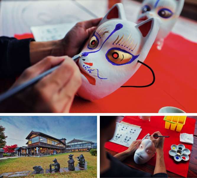 阿賀町的狐之婚嫁館以此傳說為核心,展示各種與狐狸信仰、婚禮習俗、在地民俗有關的資料與文物等,也可以體驗繪畫狐狸面具,作為旅程中一份特別的紀念品。