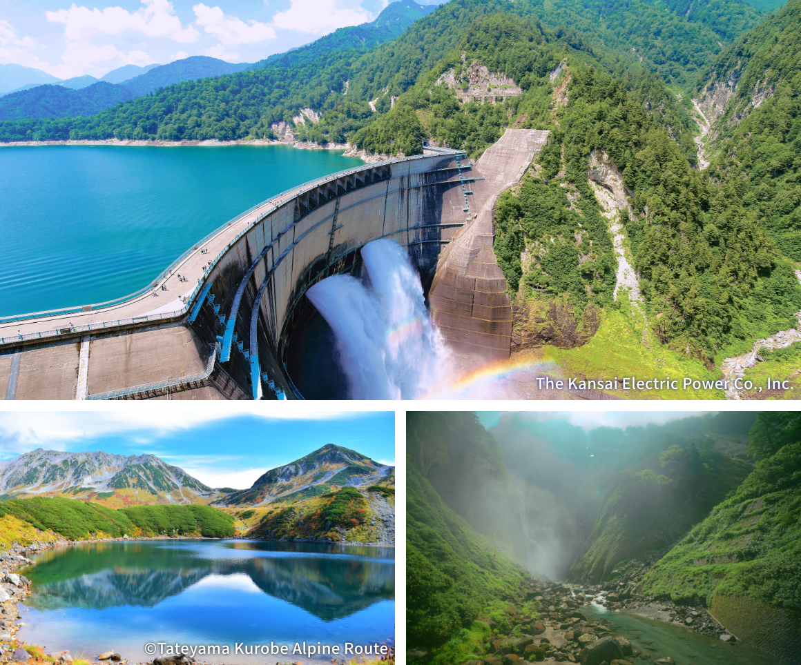 富山縣立山站至長野縣扇澤站的立山黑部阿爾卑斯路線,全長37.2 km,垂直高度達1975 m,是可乘坐六種交通工具穿梭北阿爾卑斯山的山岳絕景。春季可看到有積雪的高山,幸運的話更可能遇上被指定為日本特別天然紀念物的「雷鳥」。