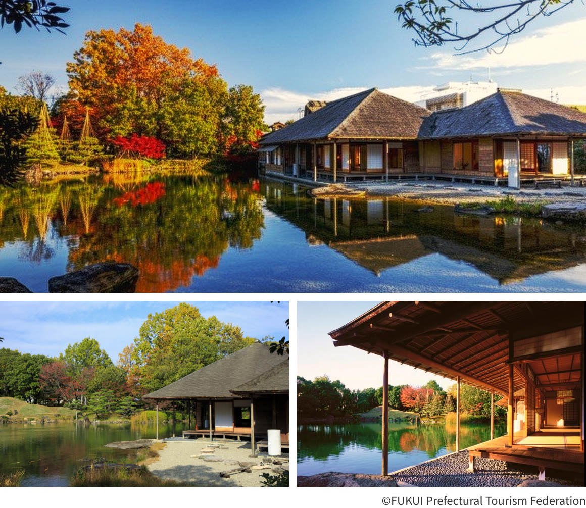 位於福井市中心的養浩館庭園,是江戶時代福井縣的藩主松平家的別邸。以大水池為中心,建築物依水邊而建,眼看宛如浮於水面之上。日本庭園開放參觀,隨著季節變更展現不同風貌,四季景色都超治癒!