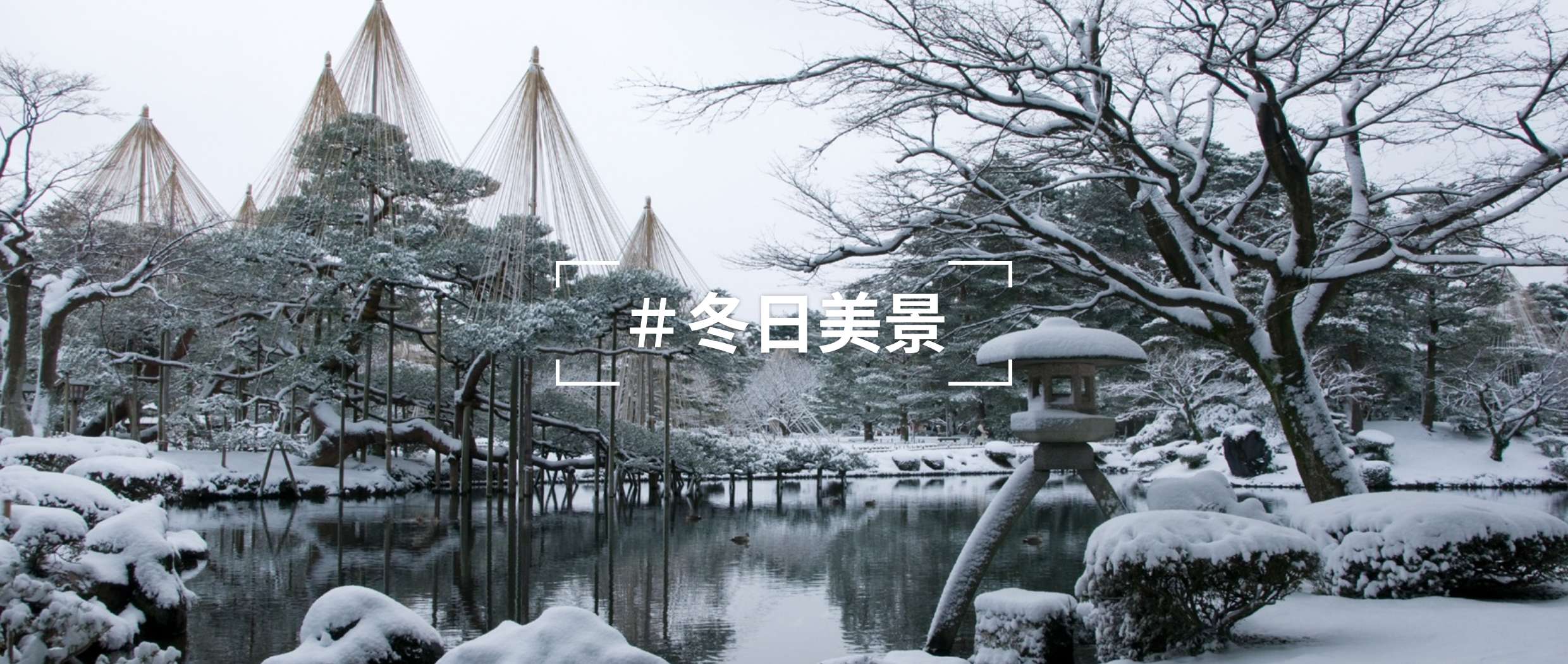 石川縣金澤市的兼六園,是日本三大名園之一,每年11月開始,在園內的松樹等樹木會設置傳統的「雪吊」,以繩索支撐樹枝,防止大雪壓壞樹木,是兼六園的冬季經典畫面。