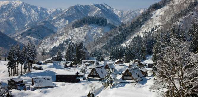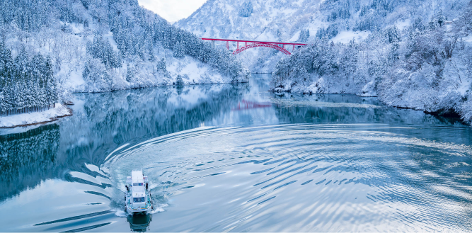 冬季期間整個山谷被白雪覆蓋,有如水墨畫一般的景色令人著迷。庄川峽遊覽船有兩條不同路線,可欣賞隨四季變化、充滿詩意的風景。