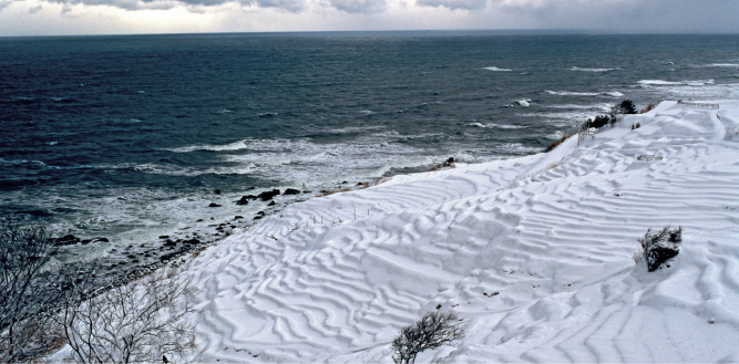 臨海千層梯田的銀白雪景