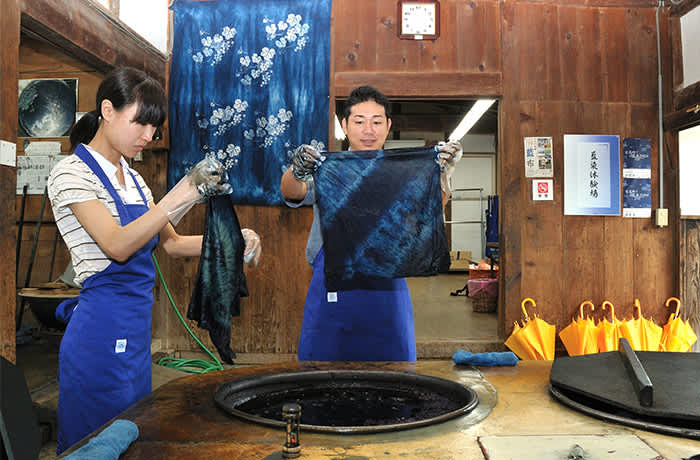 藍住町附近有多間藍染工場提供「見學」參觀及體驗工作坊,其中著名的「藍之館」特別設有歷史館,展示珍貴的傳統「阿波藍」和服等高級產品,亦保留了昔日大型藍商「奧村家」的建築物,能讓遊客感受藍染舊日的盛世時期,並詳細說明了藍汁染料的起源和藍染的流程。當然少不了參與藍染體驗,由手帕、圍巾、T-shirt到暖簾等都可以選擇,在工匠的指導下以特別方式摺疊布料,再浸泡於染料中三次,就可以染出獨一無二的藍白圖案,不妨預留時間盡情體驗!