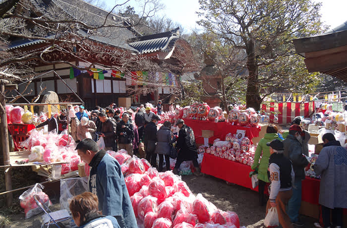 如果你於三月初到訪,更不容錯過在寺內一年一度的達摩巿集。它正名為「深大寺厄除元三慈惠大師大祭」,是日本三大達摩巿集之一,結集了300個攤位,陳列出大小各異的達摩、招財貓及動物擺設等。除了鮮紅色的傳統達摩外,大家還可以因應需要選購其他顏色,例如粉色祈求幸福、黃色祈求財運、紫色祈求健康、黑色去除厄運等。選好就可以前往開眼所,讓僧侶在新購達摩的空白左眼中,寫上象徵世間萬物起始的梵文「阿(あ)」字,有別於一般畫上瞳孔;日後當願望達成後,就可以再請僧侶於右眼寫上象徵世間萬物終結的「吽(うん)」字。