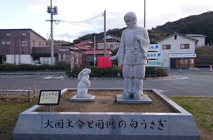 在此可找到供奉著神話裡結緣白兔的白兔神社,年中吸引不少人來求姻緣。神社內有個御身洗池,神話中白兔在此池洗過傷口後不藥而癒,故亦成了求治癒皮膚問題的神社。於附近的「道之駅 神話之里白兔」除了售賣著各式鳥取縣特產,也有以白兔為主題的美食。大國主命與因幡白兔的石像,以及白兔海岸西側的氣多之前展望廣場,都是遊客打卡的熱點,設有一個愛之鐘和白兔信箱,有說把願望寫在特製的硬幣上,站在白兔信箱三步外投進去,成功投到的次數越少,代表達成願望的日子越近,大家不妨來試試。