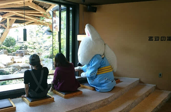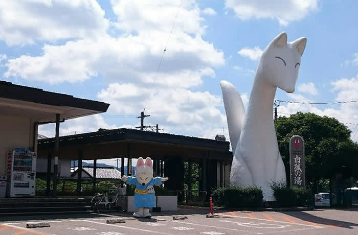 湯田溫泉鄰近山口市,起源於室町時代,相傳當時有一隻受傷的白狐每晚都會到村內寺廟旁的一個小池中泡腳,發現此事的和尚一探究竟,才知道池水溫熱而掘出溫泉。湯田溫泉亦因此被稱為「白狐之湯」,如今溫泉鄉亦將白狐設計成吉祥物,湯田溫泉區內亦多處可見可愛的白狐石像,車站前更有高達8米的白狐「湯太君」迎接遊客到來。