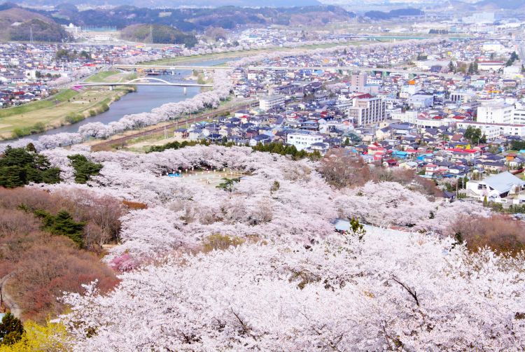 柴田町的船岡城址公園是日本百大賞櫻地點之一。勇敢攀爬陡峭小徑,或者跳上舊式的斜井人車,在櫻花織成的粉色地毯中蜿蜒前進,登上城堡的頂端,俯瞰令人屏息的美景。