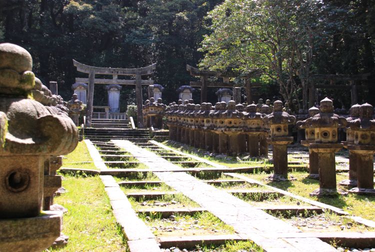 Lentera-lentera batu di Wihara Buddha Tokoji yang indah