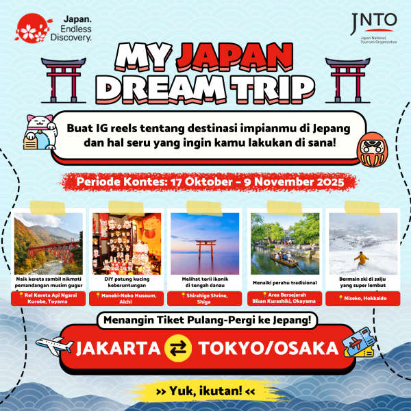 18. Pemberitahuan pemenang akan diumumkan di sosial media JNTO dan dikirimkan pemberitahuan oleh JNTO Jakarta melalui DM Instagram.