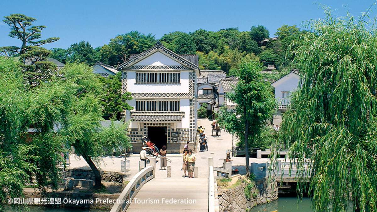 Kunjungi pemandangan kota tradisional di distrik Kurashiki dengan menapaki jalan-jalan kuno dan melihat saluran air yang indah. Daerah ini berjarak sekitar 30 menit dari Stasiun Okayama: 15 menit dengan naik kereta api dari Stasiun Okayama ke Stasiun Kurashiki, lalu 15 menit dengan berjalan kaki. Melangkahkan kaki ke Kurashiki Bikan Historical Quarter akan membawa Anda ke dalam suasana tradisional Jepang: berjalan-jalan melewati gudang-gudang tradisional berdinding putih, menyusuri jalan-jalan yang dipenuhi pohon willow, serta menjelajahi toko-toko dan restoran kuno.