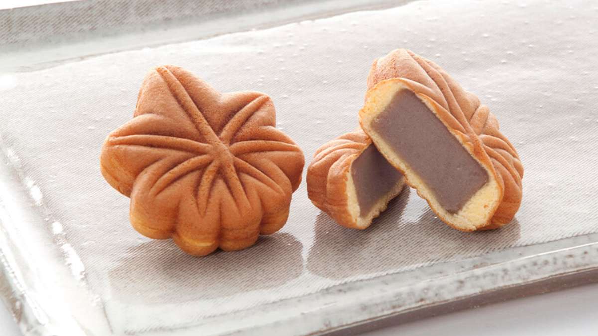 Momiji-manju adalah kue bolu castella berbentuk daun mapel dengan tekstur halus dan lembut yang berisi pasta kacang merah manis.