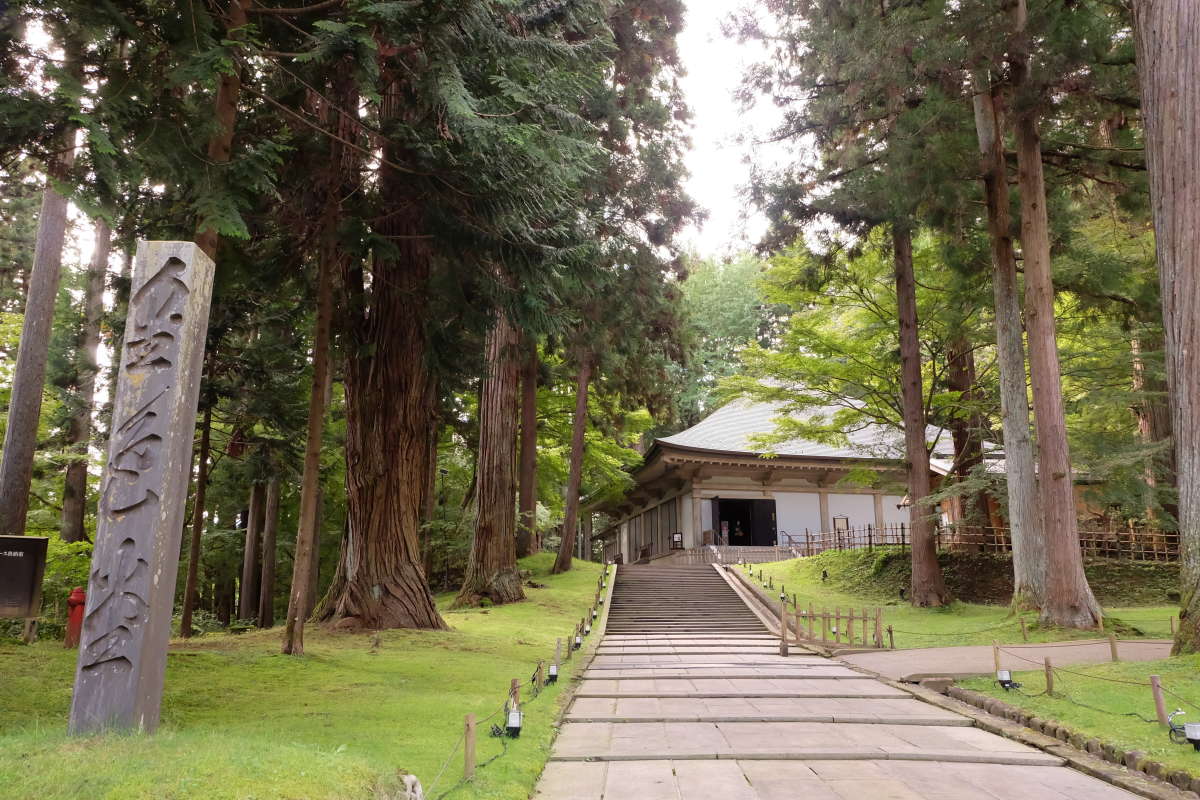 Akses: Dari Stasiun Sendai, naik Shinkansen ke Stasiun Ichinoseki (sekitar 35 menit), lalu naik kereta bawah tanah ke Stasiun Hiraizumi kurang lebih 10 menit. Dari sana, jalan kaki sekitar 7 menit
