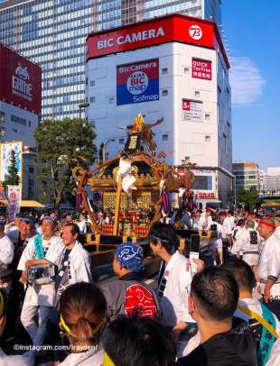 Puncaknya terjadi pada hari Minggu sebagai hari terakhir festival ketika 70 mikoshi diarak dengan gembira di jalan-jalan dan dibawa oleh tim pria dan wanita yang mengenakan "happi" — atribut khas festival tradisional Jepang, celana legging, dan bandana. Parade mikoshi ini disertai dengan nyanyian penuh semangat, tarian tradisional, dan beragam macam kuliner tersedia yang dilakukan secara gotong royong oleh masyarakat yang turut berpartisipasi.