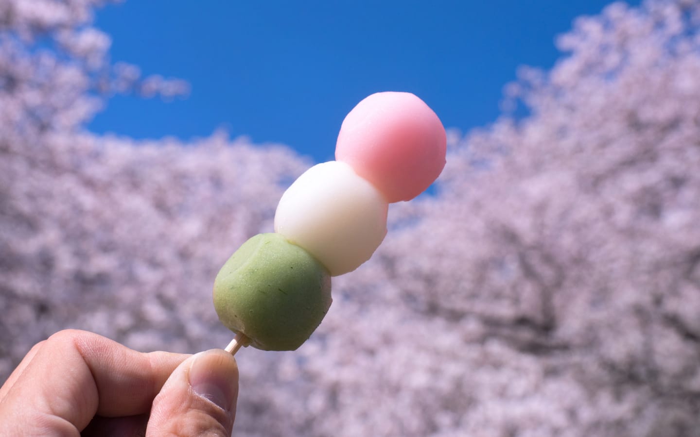 Pecinta anime mungkin sudah familiar dengan hanami dango, atau camilan yang wajib dinikmati saat piknik di bawah bunga sakura. Tak heran, hanami dango banyak dijual di festival bunga sakura. Disukai oleh beragam usia, hanami dango punya tampilan yang unik karena disajikan dengan tusukan bambu dan terdiri dari tiga warna yaitu merah muda, putih, dan hijau.