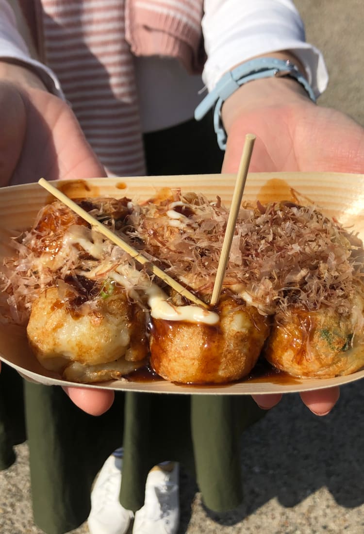 Takoyaki merupakan salah satu jajanan pinggir jalan yang paling terkenal di Jepang, atau bahkan di dunia. Takoyaki berasal dari dua kata, yaitu “tako” yang berarti gurita dan “yaki” yang berarti bakar. Jajanan ini berupa adonan tepung yang dibentuk bola berdiameter 3—4 cm kemudian diisi gurita dan dibakar. Permukaan takoyaki kemudian dioles dengan saus manis asin atau mayones dan ditaburi rumput laut kering atau katsuobushi (serutan cakalang kering). Pada umumnya, satu porsi takoyaki berisi enam sampai sepuluh buah dan dimakan dengan bantuan tusukan.