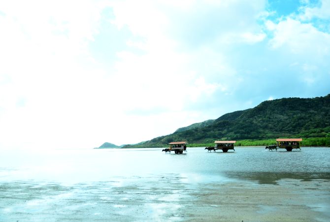 Bepergian dari pulau ke pulau di Okinawa pada umumnya berarti menggunakan feri atau terkadang pesawat. Namun jika Anda berada di Pulau Iriomote dan ingin pergi ke pulau Yubu yang kecil, Anda bisa naik kereta kerbau air.