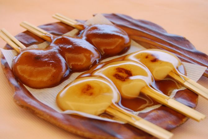 Per chi cerca uno spuntino veloce, c'è il famoso dolce locale noto come jambo-mochi, due dolcetti di riso leggermente tostati infilzati su due bastoncini e glassati con soia dolce o salsa di miso. Si dice che i due bastoncini rappresentino le due spade portate tradizionalmente dai samurai.