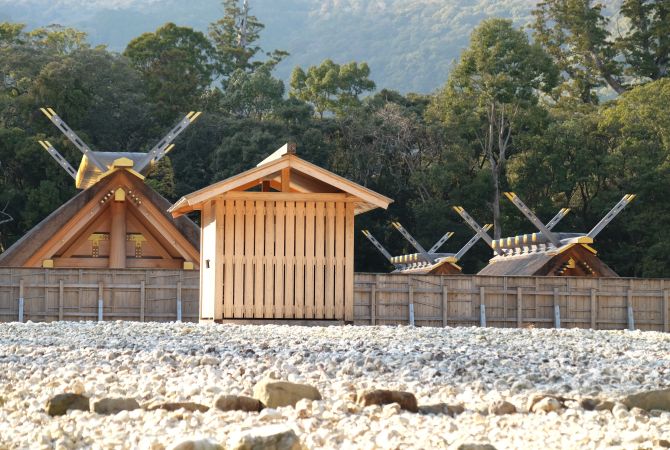 센구칸 박물관 에서는 다양한 전시를 통해 이세진구의 시키넨 센구(신사 이전) 의식을 살펴볼 수 있습니다. 전시물에는 신령을 모신 구조물을 실물 크기로 재현하는 모습, 그리고 신을 위한 신성한 장식물과 보물들을 만드는 제조법 등이 포함되어 있습니다.