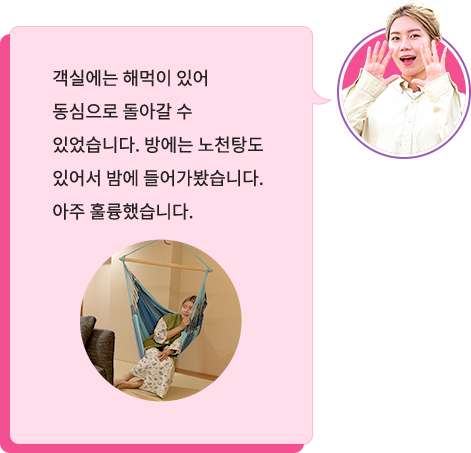 비단잉어도 헤엄치는 넓은 로비는 호화로운 샹들리에와 수많은 미술품으로 장식되어 호텔에 한발 들어선 순간부터 다른 세계가 펼쳐집니다. 바다쪽에는 최대급 규모를 자랑하는 대욕장과 에메랄드그린의 자가원천 ‘시라타마노유’를 끌어온 노천탕을 밤에도 아침에도 즐겨보세요. 객실은 해먹이나 노천탕이 있는 일본식 모던 객실을 비롯해 다양한 타입이 있으며 어느 방도 쾌적하게 보낼 수 있습니다. 사계절을 비추는 정원을 보면서 정성을 곁들인 요리도 즐기세요.