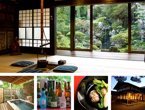 홋코쿠카이도(北国街道)의 역참마을로 번성한 이와무로 온천은 일본에서도 드문 검은 색 원천인 “흑탕”이 솟아나오는 곳입니다. 그곳에 있는 ‘고시노야도 다카시마야’는 270년전(에도시대 중기)의 쇼야야시키(촌장 저택) 양식 분위기를 남긴 대대로 유명한 여관이며 지금까지 수많은 유명 인사들이 숙박해온 격식 있는 유명 숙소로, 국가 등록 유형문화재에도 등록되어 있어서 ‘숙박 가능한 료테이(요정)’라고도 불립니다. 아름다운 정원도 바라볼 수 있는 편백나무의 노천온천이 있는 객실에서 전통 일본 요리를 마음껏 즐기세요.