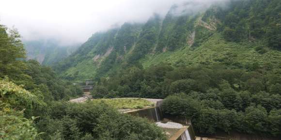 ‘일본 폭포 100선’ 및 ‘일본 소리 풍경 100선’에 선정된 쇼묘 폭포는 일본 최대 낙차(350m)를 자랑하는 대형 폭포입니다. 폭포의 굉음이 ‘나무아미타불’이라는 칭명(쇼묘) 염불을 외는 것 같이 들려서 이런 이름이 붙었다고 합니다. 4단에 걸쳐 힘차게 떨어지는 물보라 광경은 압권입니다. 눈 녹은 물이 풍부한 시기에는 쇼묘 폭포 오른쪽에 ‘한노키 폭포’라는 낙차 500m 폭포가 생겨납니다. 두 개의 폭포가 V자를 그리듯 떨어지는 모습이 많은 사람들을 사로잡고 있습니다.