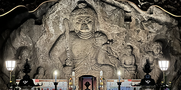 1300년 넘는 역사를 지닌 Ooiwa-san Nissekiji temple은 진언밀종의 대본산입니다. 725년 고승 교키(行基) 스님이 하룻밤에 새겼다는 ‘부동명왕 마애불’은 국내 최고 걸작 마애불로, 국가 중요문화재로 지정되어 있습니다. ‘롯폰다키’에서의 폭포 수행은 육근(눈, 귀, 코, 혀, 몸, 의식)을 정화하는 수행 체험으로 일반 참배객들에게도 인기입니다. 또 재정난 때문에 완성되지 못해 벽과 문이 없는 채 남겨진 ‘삼중탑’, 경관미와 이끼를 즐길 수 있는 ‘센간케이’ 등 볼거리도 풍부합니다.