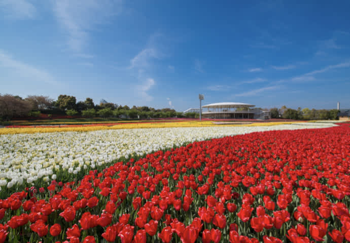 계절의 꽃들이 만개하여 마치 카펫처럼 선명한 색으로 원내를 장식한다. 밤에는 일루미네이션으로 장식되어 낮과는 또 다른 매력을 만끽할 수 있다(5월 6일까지 개최).