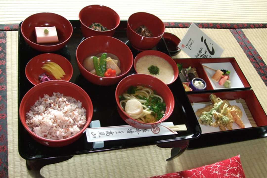 비와타키 폭포에서 행해지는 폭포 수행과 사경 등과 같은 전통적인 수행이 계승되고 있으며, 불건너기(정화로 재앙을 물리치는 불 수행)는 특정 제례나 행사 때 거행됩니다. 또한 불교 계율에 따른 전통적인 정진요리를 먹으며 심신을 가다듬는 체험(예약제)도 꼭 해 보시기 바랍니다. 정진요리는 단순히 동물성 식재료를 사용하지 않을 뿐만 아니라, 재료 자체의 제철과 자연의 은혜를 소중히 여기면서 음식 만들기와 음식 섭취를 하나의 수행으로 간주하는 영적인 식문화입니다.