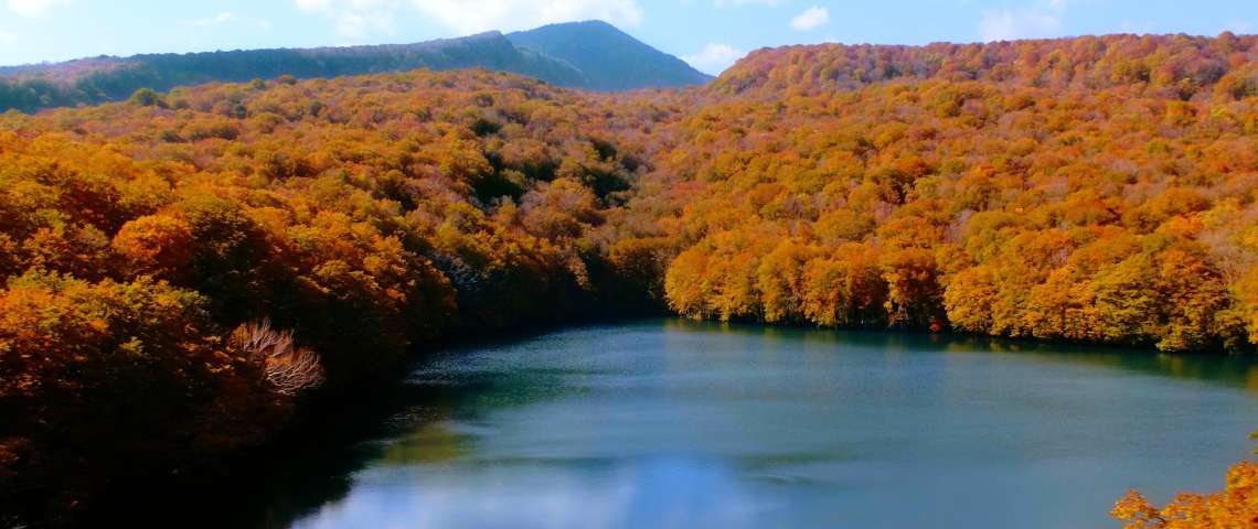 쓰타누마 일대는 너도밤나무의 원시림이 펼쳐져 있습니다. 너도밤나무는 가을이 되면 약속이라도 한 듯 일제히 붉게 물듭니다. 바람이 일지 않는 쓰타누마의 수면에 비춰진 새빨갛게 물든 산줄기를 보고 있으면, 무심결에 숨을 죽이게 됩니다. 이 아름다운 풍경은 관광용 포스터에도 여러 번 실린 장소로, 많은 사람을 매료시킵니다.