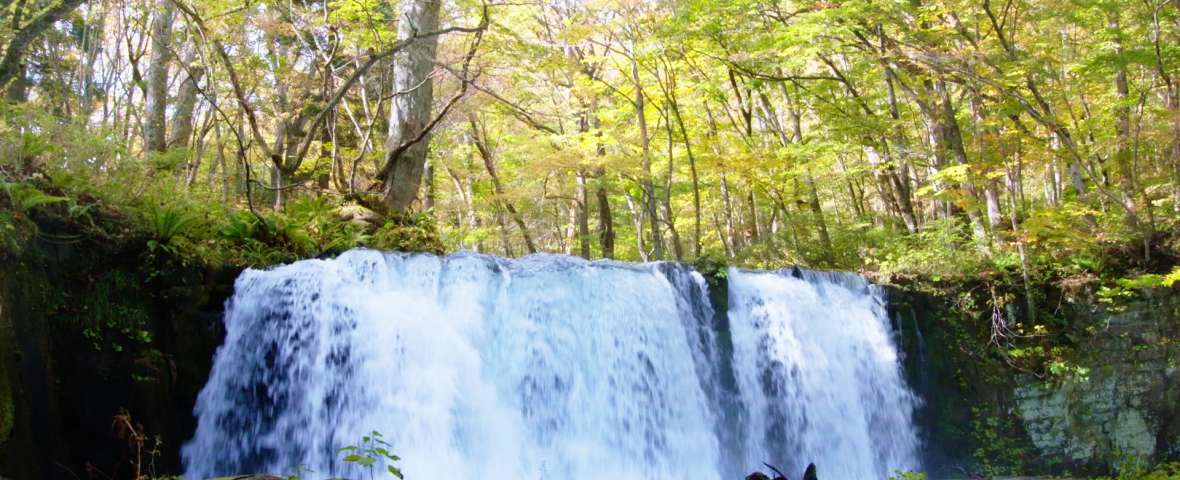 다양한 종류의 폭포와 기암, 뛰어난 경치를 품은 채, 도와다호부터 약 14km에 걸쳐 여울, 심연, 급류, 완류로 다양하게 변화하며 흐르는 오이라세계류는 일본 천연기념물로 지정되어 있습니다. 바닥까지 보일 정도로 맑은 계류는 나뭇가지와 잎 사이로 내리쏟아지는 햇살로 인해 더욱 빛나 보입니다.