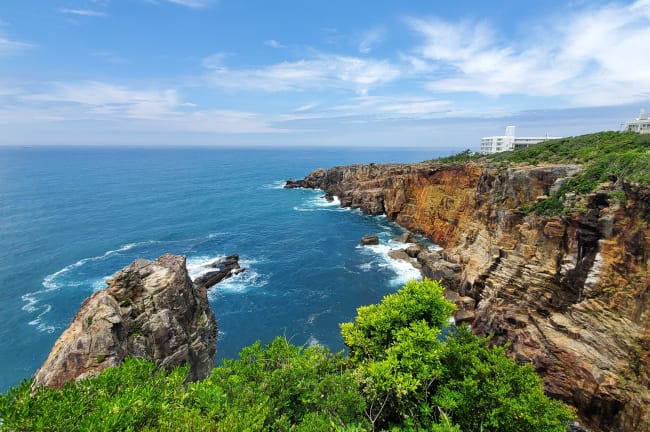 사키노유는 1300년 이상의 역사를 지닌 시라하마의 유명 온천입니다. 절벽 위로 돌출된 노천탕에 몸을 담그고 태평양을 한눈에 바라보는 시간은 일상을 잊게 하는 특별한 경험을 선사합니다.