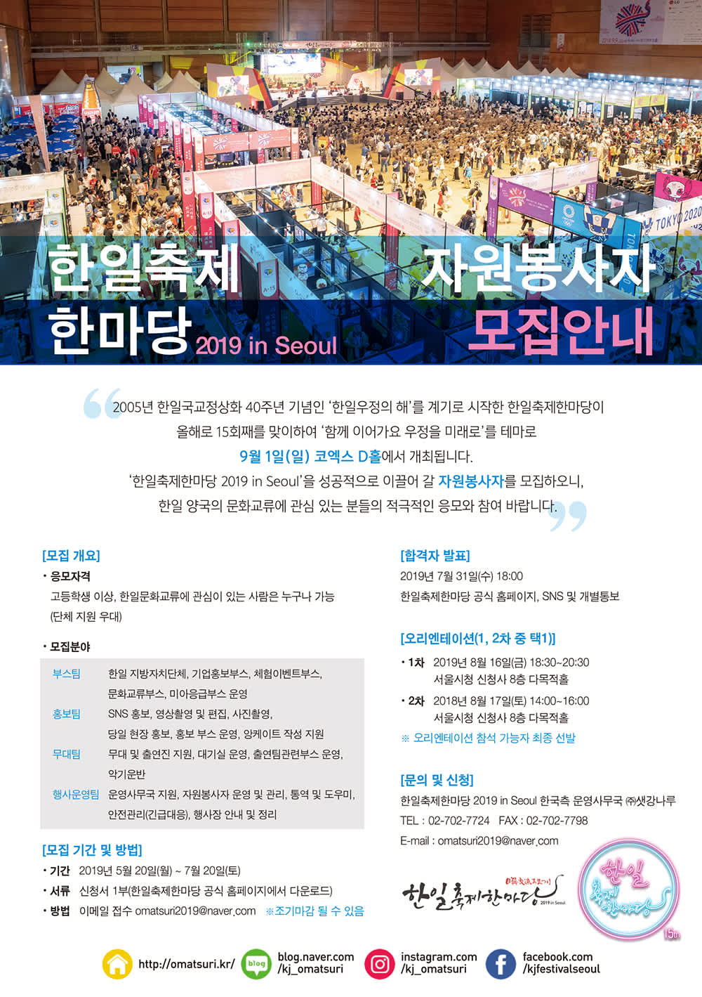 공식홈페이지: http://omatsuri.kr/volunteer (신청서 다운로드 가능)