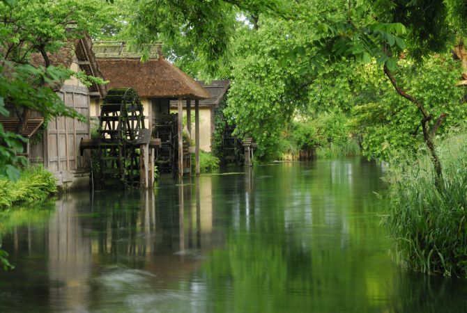 농장 전체에 골고루 퍼진 산책로를 따라 걸으면 물레방앗간과 초가집을 만나게 되는데, 이곳은 구로사와 아키라 감독의 1990년 작 "꿈"의 세트로 지어졌습니다. 농장의 경계를 이루는 다테강 기슭을 지키고 선 모습이 무척 아름답습니다. 날씨가 따뜻할 때는 급류타기를 겸해 배를 타고 물살을 따라가면 농장과 주변 모습을 색다른 시점에서 감상할 수 있습니다.