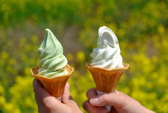 달콤하면서도 모험심을 자극하는 메뉴로는 와사비 소프트 아이스크림을 추천합니다. 목만 축이고 싶으시다면 초록색을 띠는 와사비 맥주, 또는 와사비 소다와 같은 무알콜 음료도 있습니다. 물론 신선한 생 와사비도 맛볼 수 있습니다.