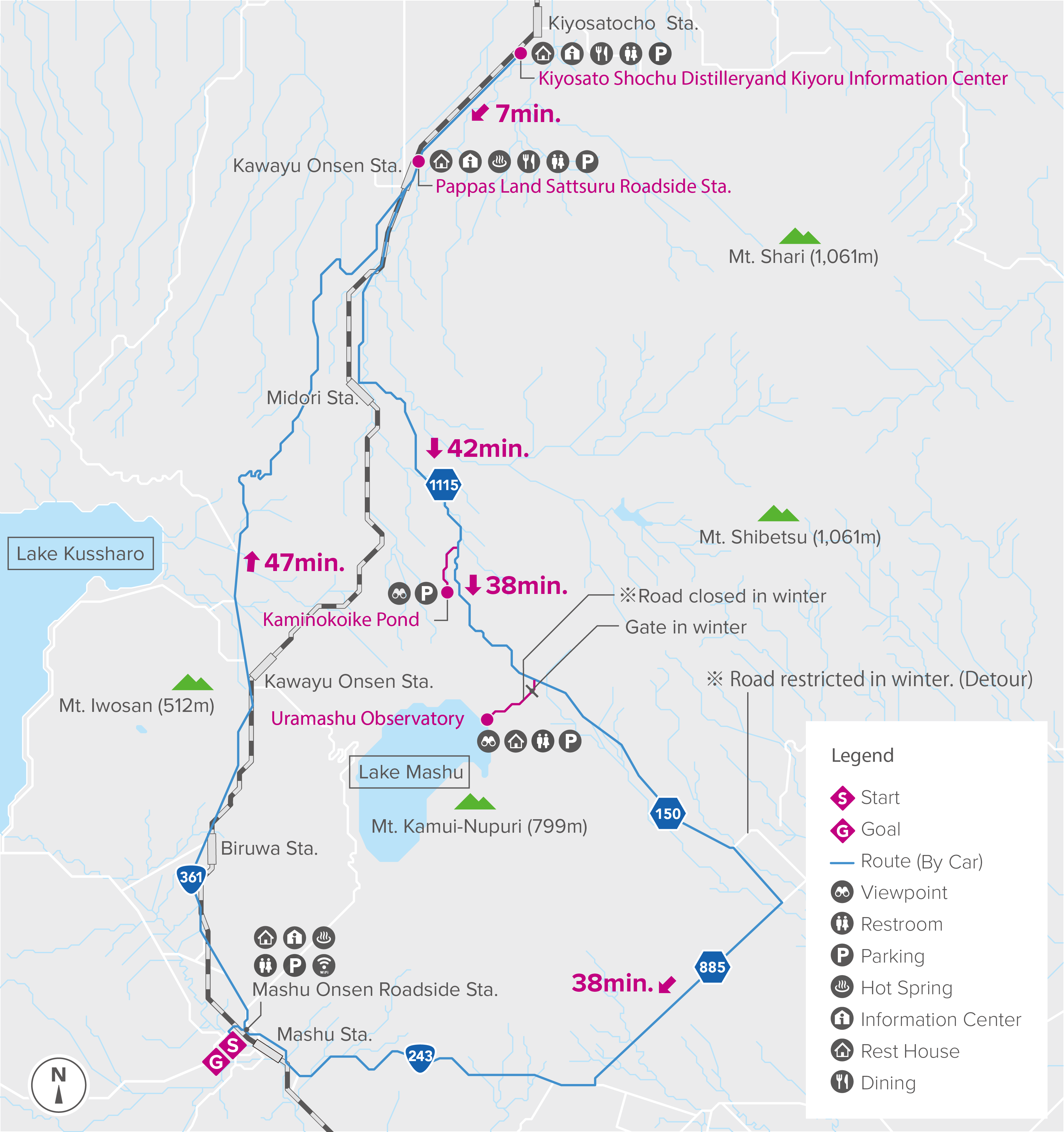 A driving route that takes you through the beautiful forests and farmlands of the Mashu area