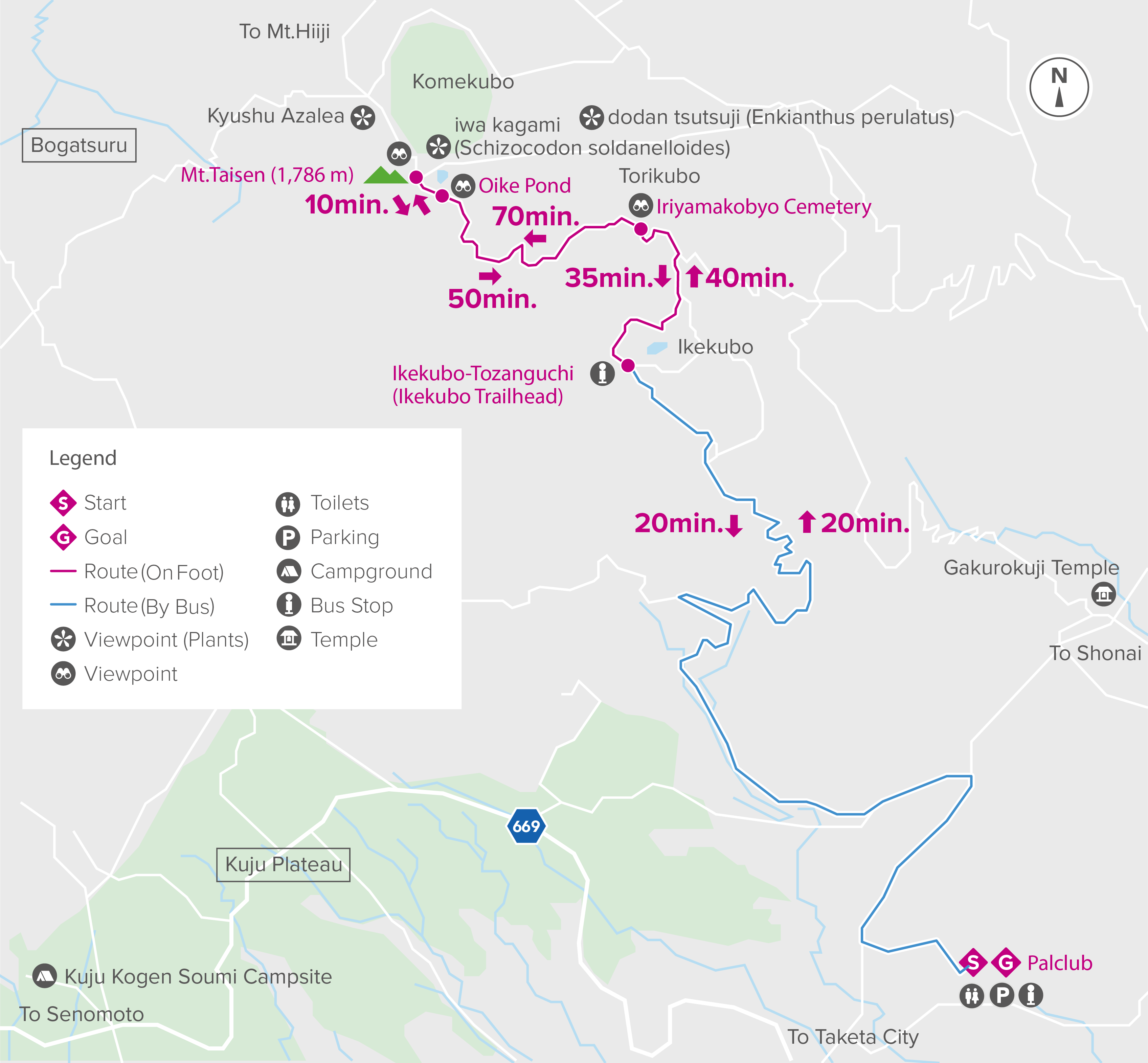 If you choose not to take the bus from Kusumi Kogen Palclub Resort, the climb from the trailhead at Gokurakuji Temple will take about three and a half hours.