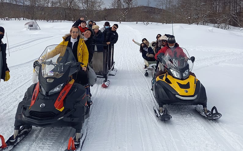 When Lake Hibara in Bandai-Asahi National Park freezes over in winter, you can enjoy a fun-filled time in a snowy wonderland. Travel across the lake by snowmobile, and enjoy a range of activities, from ice drilling and smelt fishing, to walking on the frozen lake. Between activities, you can warm up in a heated hut, right on the lake.