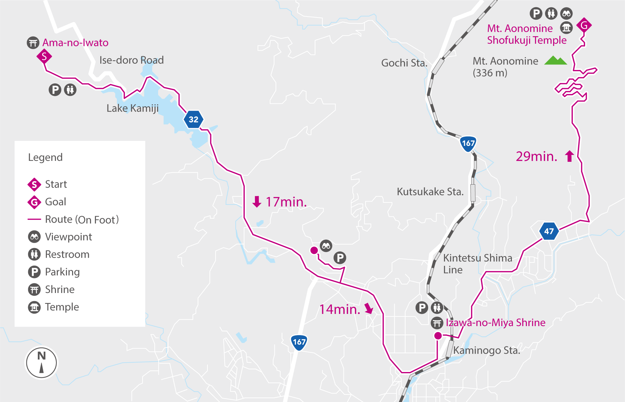 From here, follow Prefectural Route 47 for around 2 kilometers, and then take the road to the left for Mount Aomine. After winding your way up the switchback roads of the mountainside, park by Shofukuji Temple.