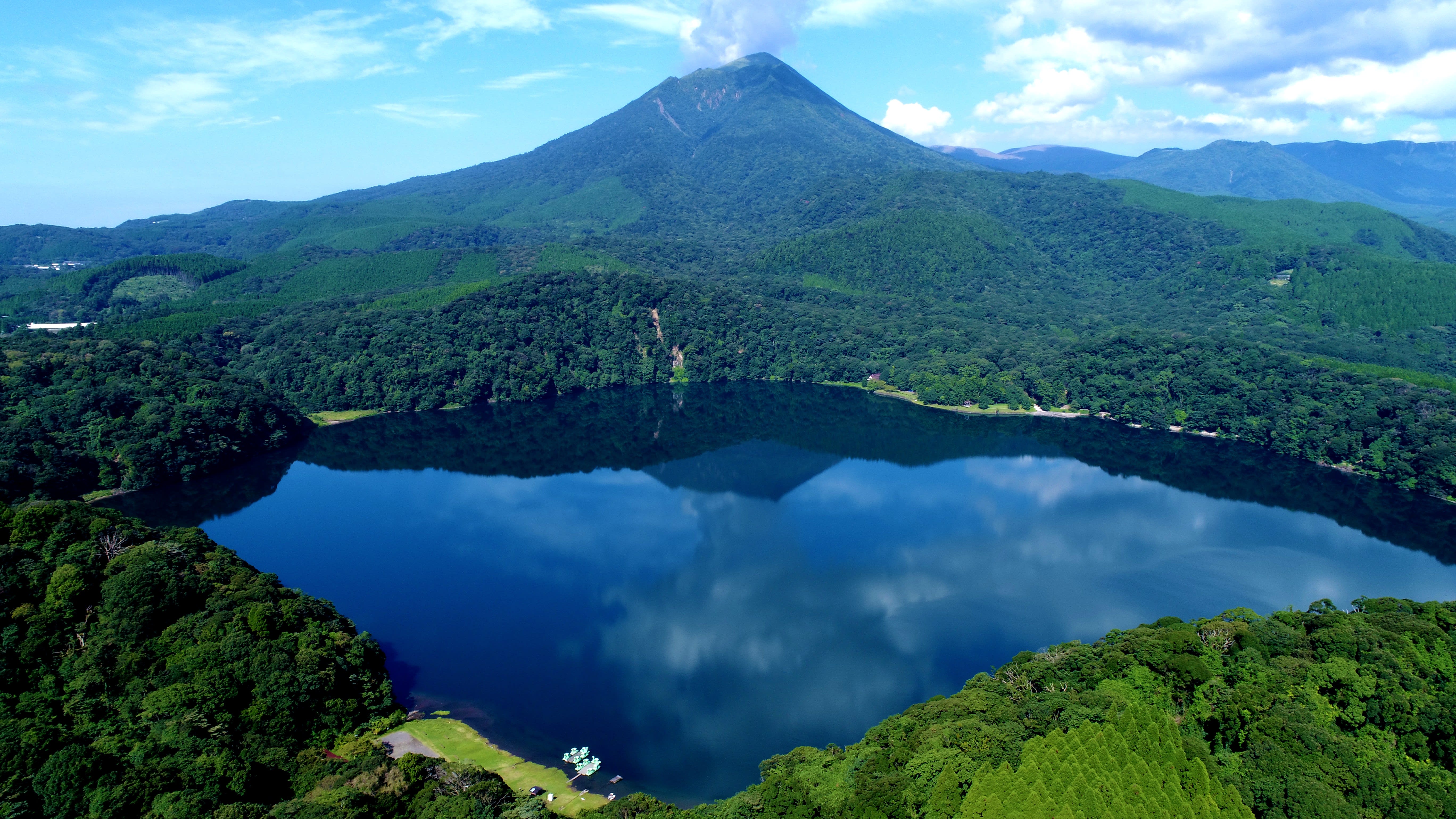 Miike Camping Village is on the shore of Lake Miike, the deepest crater lake in Japan. Located in Kirishima-Kinkowan National Park, it is a nationally designated wild bird forest. Escape the stresses of daily life and relax with the sounds of birds and a view of the mirror-like lake. Stay overnight in a tent or in a bungalow. Enjoy activities on the water including SUP, kayaking, rowing, and fishing. Unwind in the carbonated hot springs at nearby Oku-Kirishima Onsenkyo village, and visit Kirishima-jingu Shrine at the foot of Mount Takachiho-no-Mine.