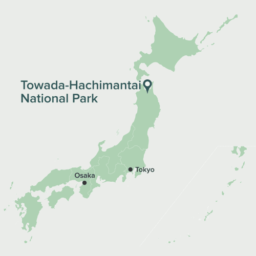 Towada-Hachimantai National Park consists of two zones: the Towada-Hakkoda area, which includes the Hakkoda Mountains, Lake Towada, and Oirase Gorge, and the Hachimantai area, encompassing Mount Hachimantai, Mount Iwate, and Mount Akita-Komagatake. Both zones are home to some of Japan's best beech forests, sustaining a rich variety of plant and animal life. At the same time, the volcanic terrain has given rise to a variety of hot spring baths and resorts, allowing visitors to experience Japan's long-standing hot spring culture firsthand.
