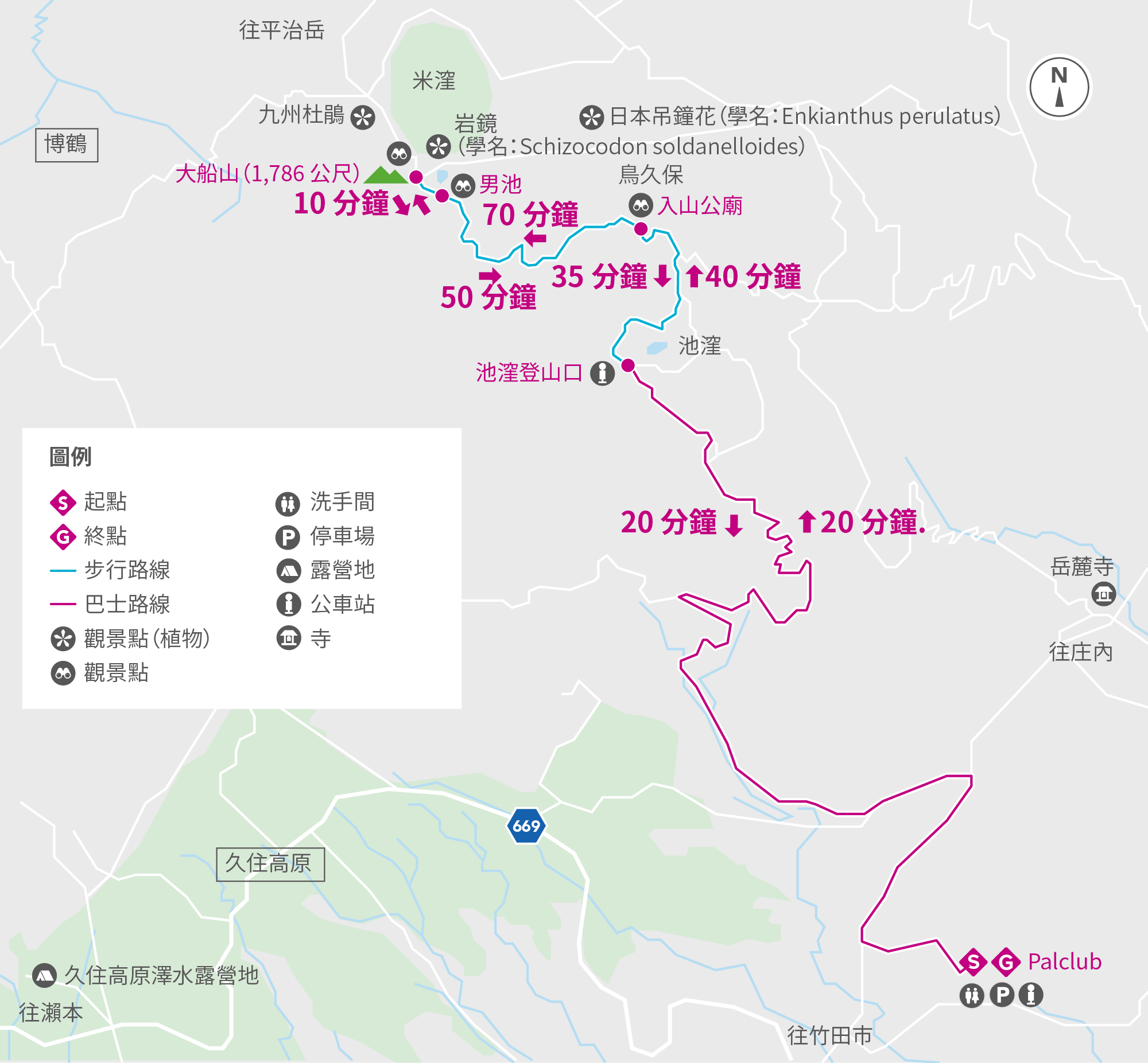除了在久住高原 Palclub 度假村搭乘巴士,亦可從極樂寺的登山口出發,路程約需 3 小時半。